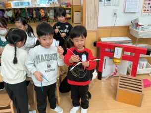 にじぐみさんを中心に、手作りおみくじとお守りで初詣ごっこをしています🌟