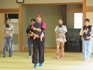 おひとりずつ抱っこひもの装着チェックをしていきます