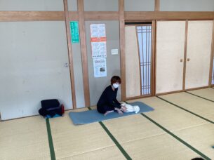 お子さんを抱っこしてできるヨガのポーズや、お子さんへの鎖骨マッサージも教えていただきました